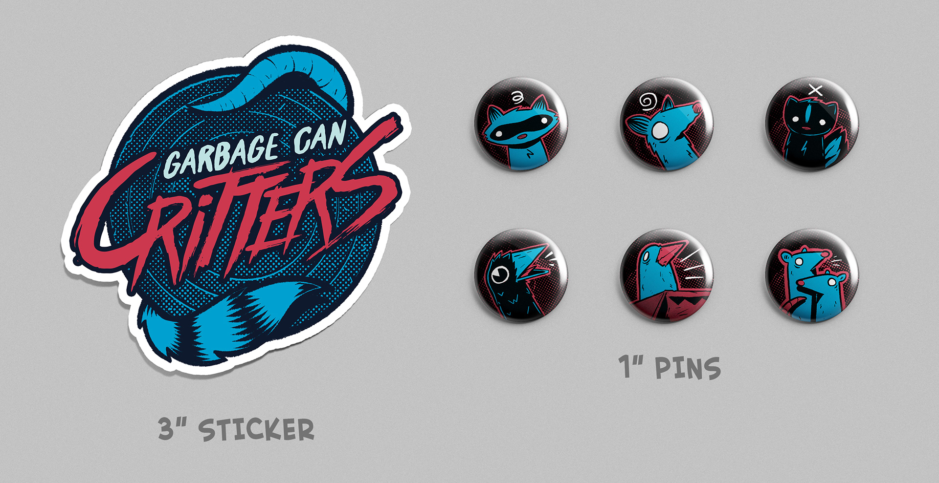 Garbage Can Critters zine and button pins for SD Zinefest.