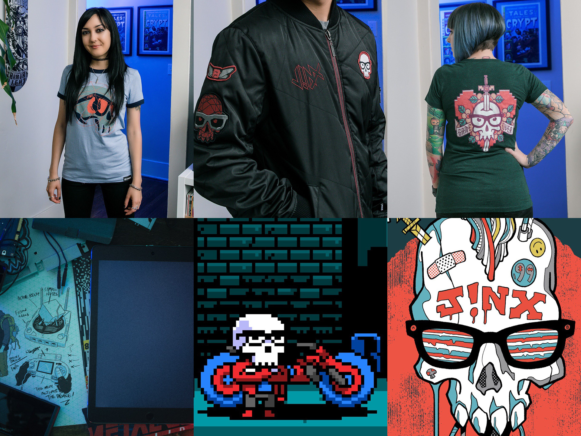 The J!NX Brand is the culmination of many combined lifetimes of fanaticism about gaming and a passion for clothing. We put a heavy focus on comfort, fit, and style because we wanted a collection that we could wear both while gaming and when we leave the house.